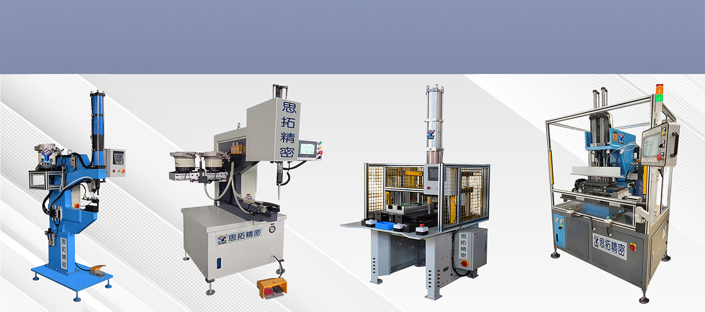 無錫思拓公司主要生產經營:壓鉚機、旋鉚機、無鉚釘鉚接機、自穿刺鉚接機以及各種非標定制自動鉚接機生產線。
